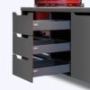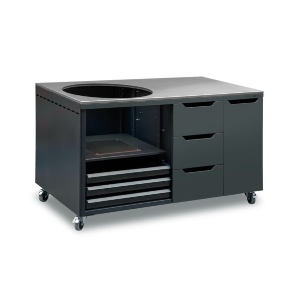 Reguleeritav alus võimaldab grilli tõsta või langetada, et saaksite töö kõrguse ideaalselt sobitada nii enda kui ka grilli järgi – ergonoomilised lahendused muudavad grillimise veelgi nauditavamaks.