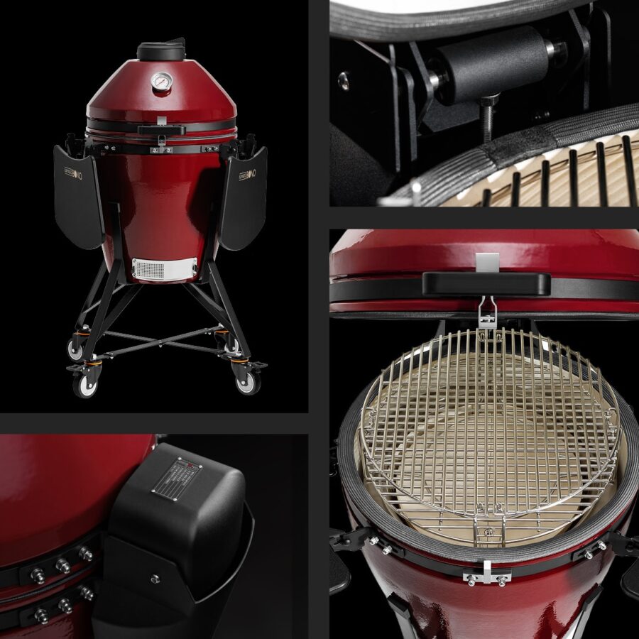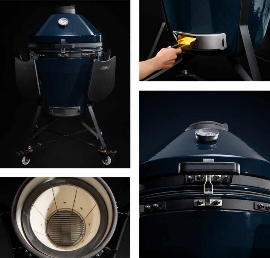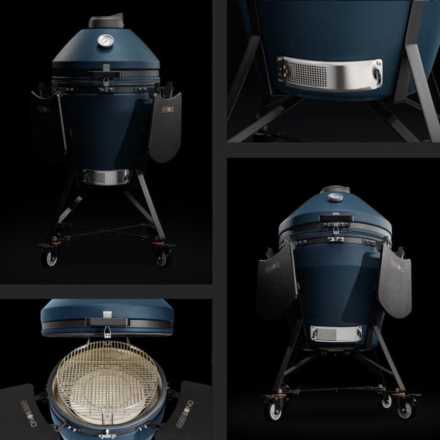 Kamado Bono EVO is our latest, advanced series of grills, crafted by our team of grillers working hand in hand with high-tech product engineers. That’s where the real-world BBQ knowledge, 12 years of practice meets technologies and engineering. As a result, we managed to build high capacity, reliable, good looking and easy to use device.